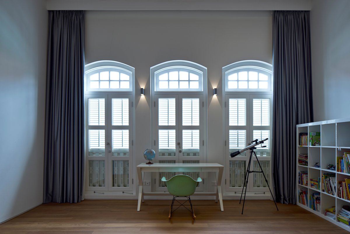 The shophouse had been in a bad state, having been stripped of its historical characteristics and renovated for office use. With much support from the client, the architects made a conscious effort to bring these traditional elements back while also reinstating the shophouse to residential use. Considering the scale of the restorative work required the final product is both a perfect home for the modern family as well as a fitting tribute to the shophouse’s history.