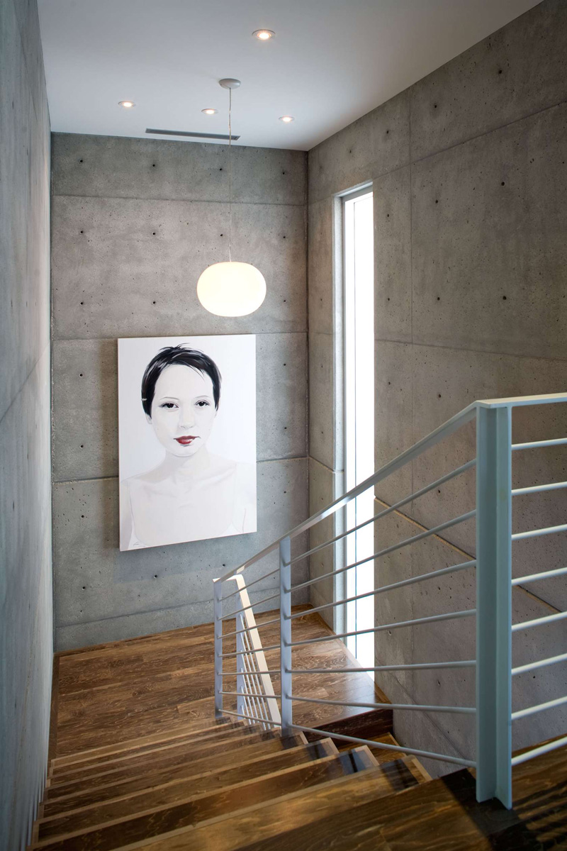 DESIGN INTENT:Clients are a Culver City art gallery owner and a musician with two young boys.From the street the house is a series of overlapping rectangular volumes each with different materials and textures. The house is anchored by a 3-story poured concrete stair enclosure.