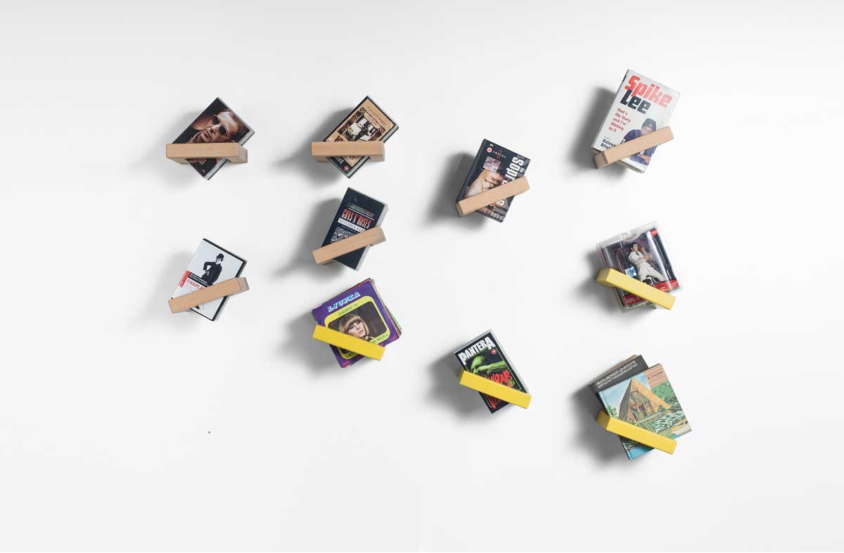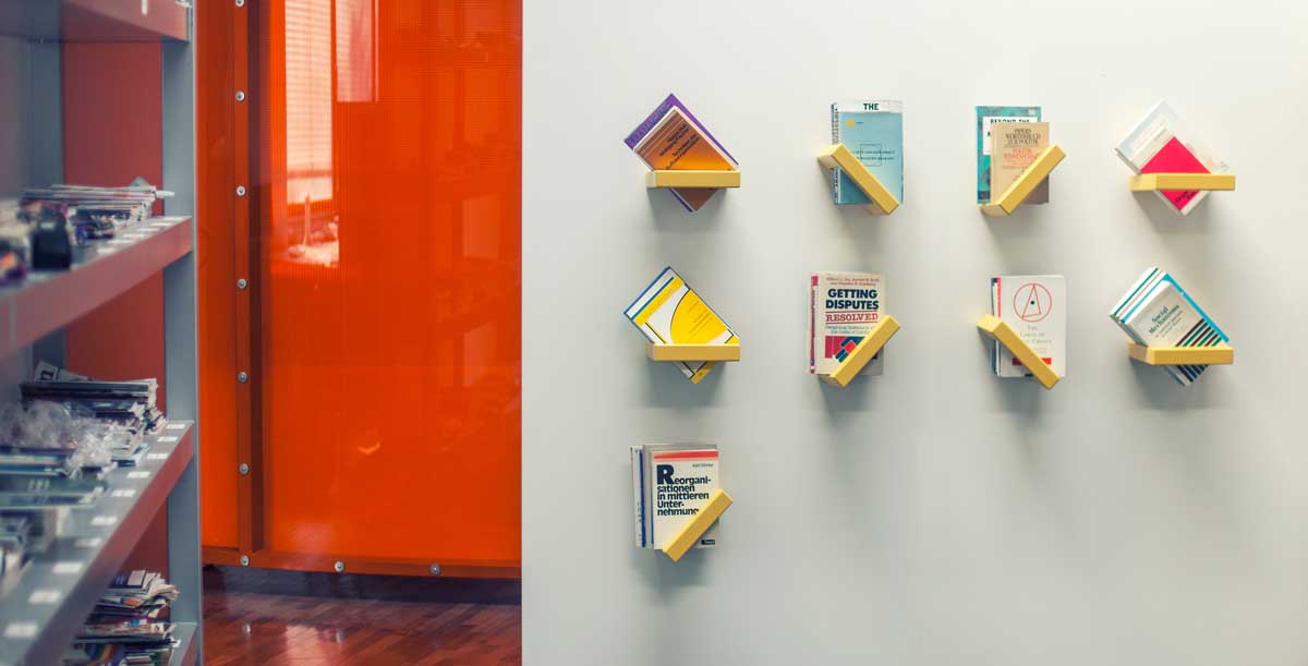 Applications: Living room (books and book colour patterns, zines, LPs, iPads), Kitchen (cook books, recipes), Bedroom (bedtime stories, games), Office (cases and binders), Waiting room (things that make waiting easier), etc.