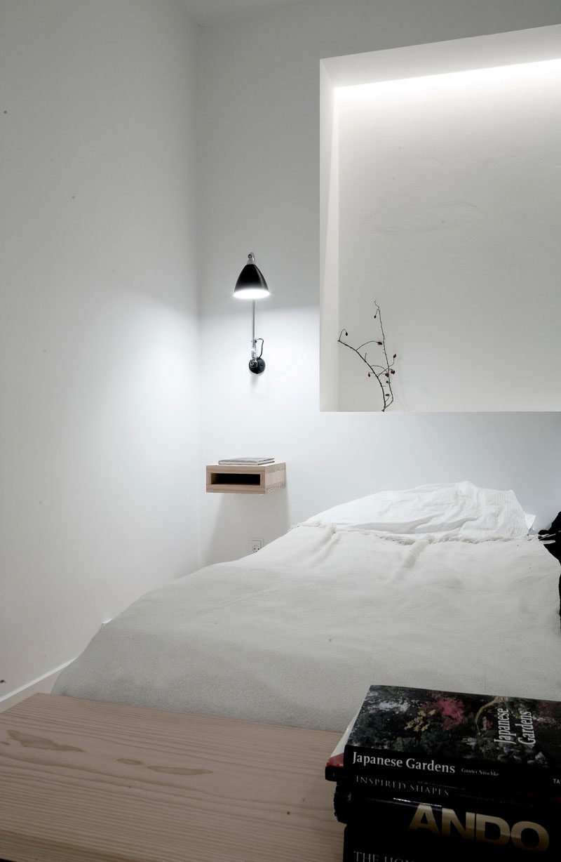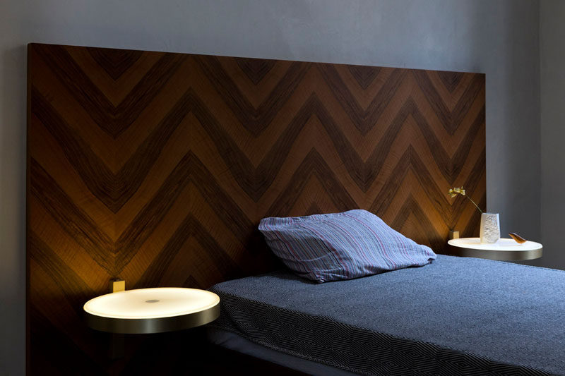 This nightstand seems to emerge right out of the wall and creates a seamless look against it.
