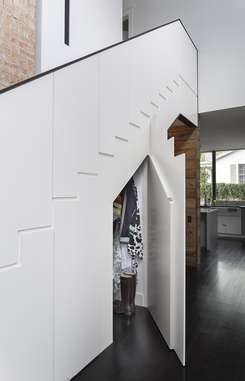 Exterior photography, stair storage and office nook by Whit Preston