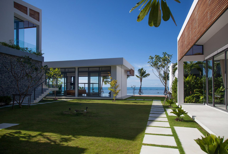 Sicart and Smith Architects designed the villa that lies right on LaemNoi Beach, boasting 45m (or 147 feet) of pristine beach frontage.