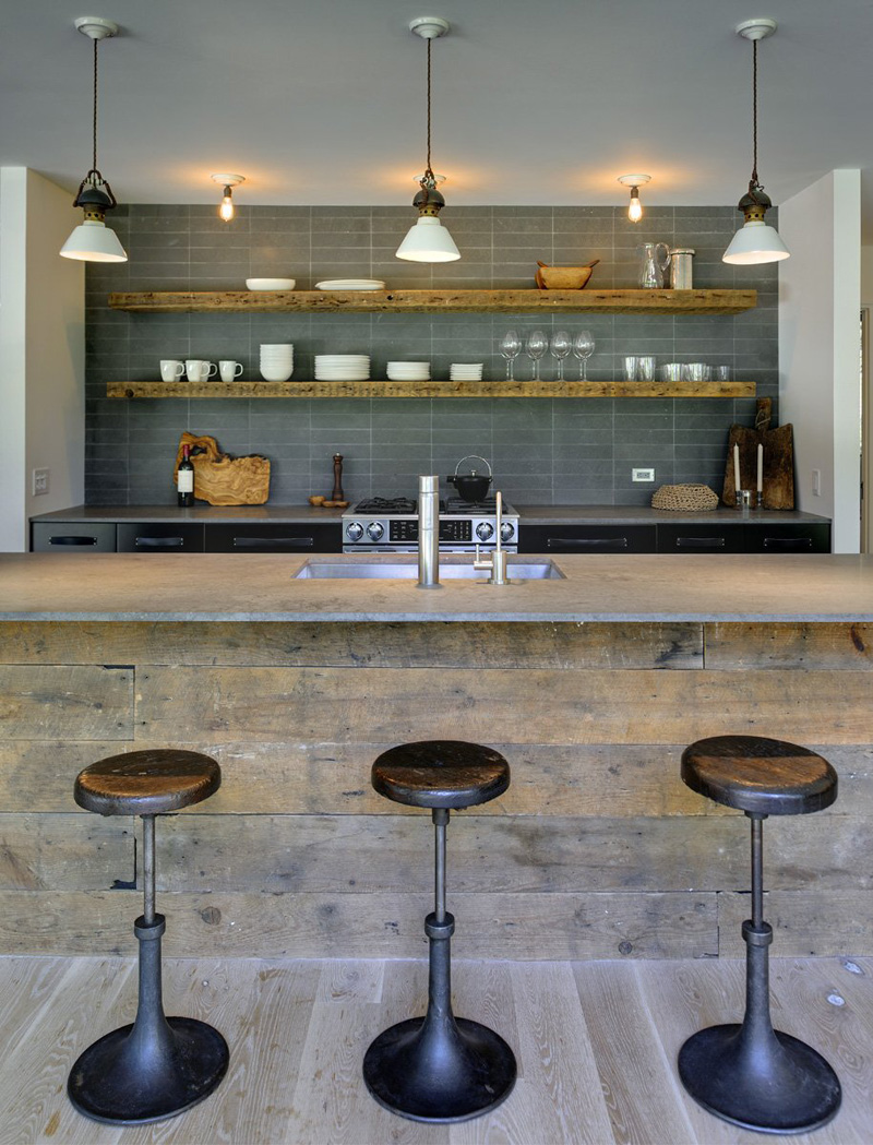 The clients, an interior designer and a DJ, requested a complete renovation and addition of a 1960’s kit house in Amagansett, NY to be a weekend retreat from their urban apartment. The clients gathered images of objects and conventional materials utilized in new, interesting ways as inspiration for the design.