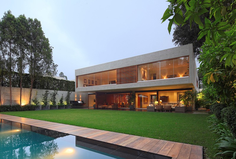 The house was built completely in concrete and steel to express its structural characteristics and plasticity allowing it to be molded in to volumes that intertwine creating voids to generate light and defining the interior and exterior spaces.