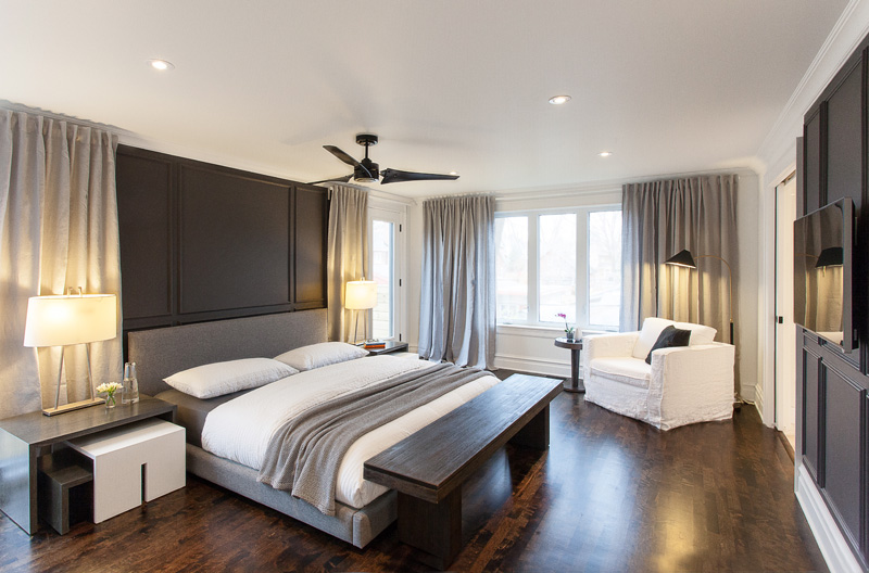 The master bedroom was designed as a private suite for the parents, to find relaxation from the busy life that comes with a 3 and 5 year old. The ensuite acts more as a private dressing room with a central bath tub and both shower and toilet are behind frosted glass to ensure privacy when the ensuite is open to the sleeping area.
