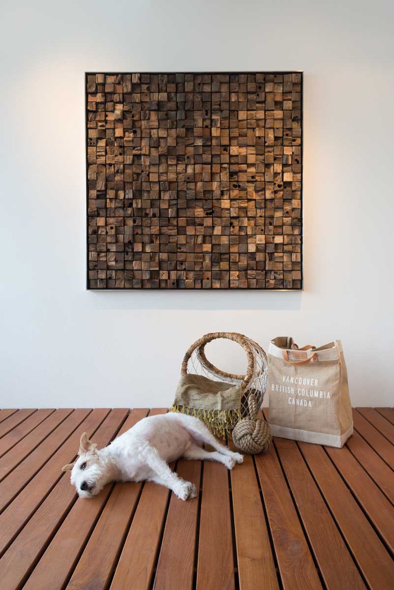 Looking around, you’d find that the apartment is founded on a number of wood-inspired motifs with other raw materials. Abstract tree branches in the living area are accentuated by the pendant lamps from ‘Catellani & Smith’ which immediately gives the place an air of mystery. Earthy tones and choice of natural elements enhances the natural feeling within the space.