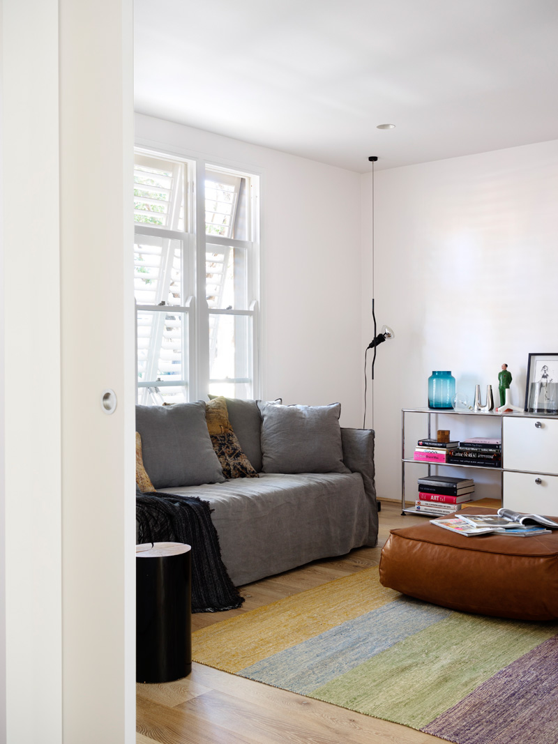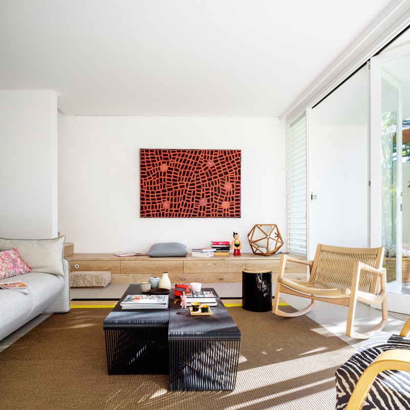 The plan is designed to be flexible to accommodate changing needs of the occupants. The kitchen forms the centre of the multiple living spaces, in the centre of the commodious family living area which leads out to the garden. Towards the street is a space with lower ceiling & timber floor used as a more intimate sitting room.