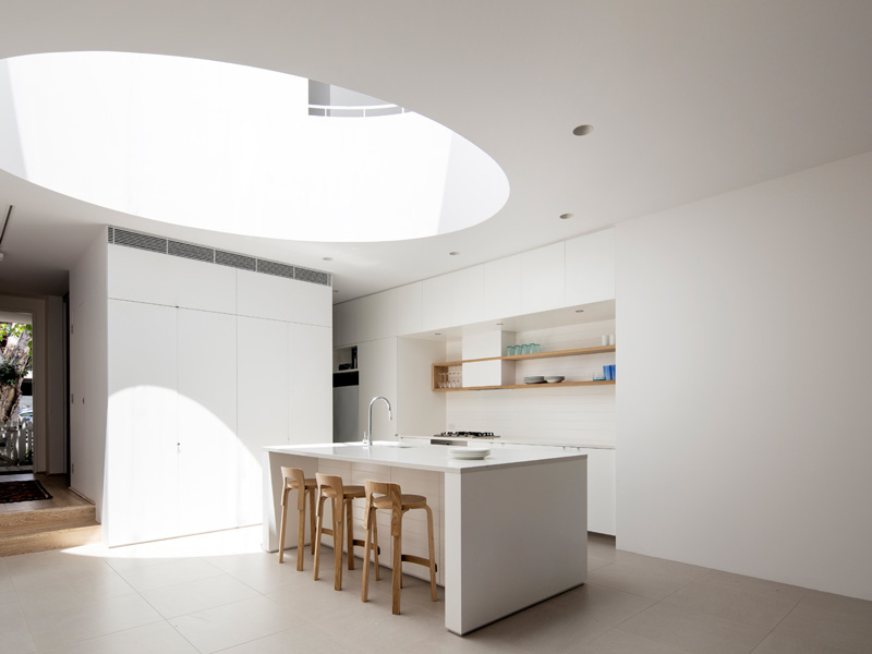 Campbell Architecture continue to explore home design with traditional forms used in a contemporary way, with this Sydney home filled with natural light throughout, including a giant oval-shaped skylight.