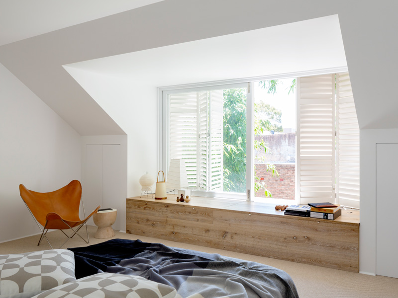 At the rear, facing the sun & garden, the same form is stretched to welcome in the light, the view & create a large window seat in the main bedroom.