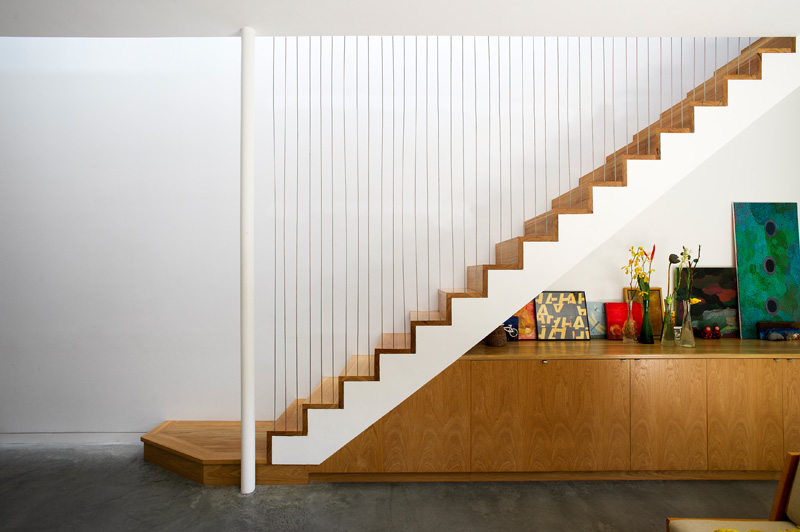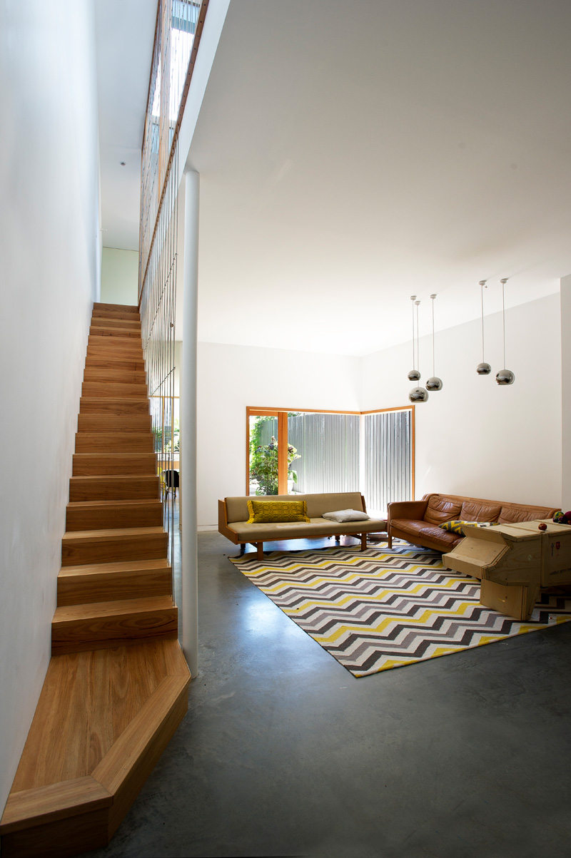 On the upper level a linear skylight defines the central hallway and allows natural daylight to filter through the stair to the ground floor with an extended void running the full length of the living room. Passive ESD principals underpin the design.