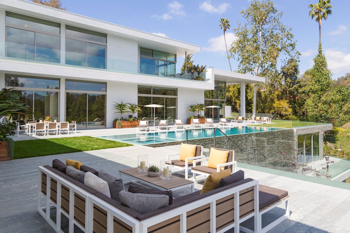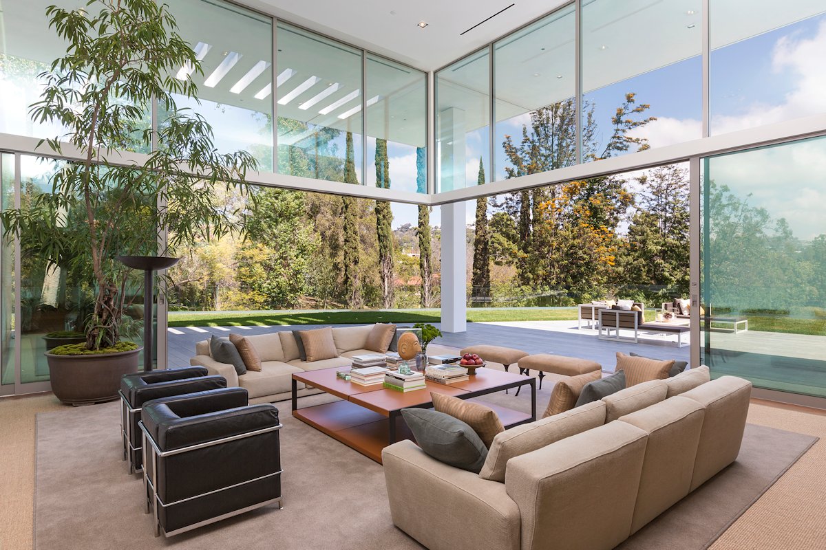 Designed by London-based Quinn Architects, Holmby Hills Residence is a speculative residential development for international property developer Estate Four. The property is situated on a 57,250 sq ft site in Holmby Hills, Bel Air, Los Angeles. The house is framed on all sides by luscious vegetation, with panoramic views of the Hollywood Hills beyond. Blending sensitively into its natural surroundings, this elegantly proportioned, secluded and private 15,250 sq ft villa was completed in January 2014.Design