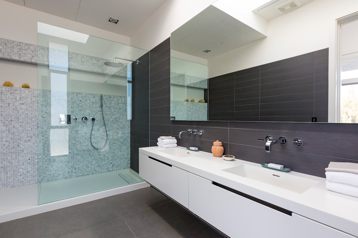 Continuous white walls running from inside to out reinforces the connection between internal and external spaces. The south and west facing facades are mostly solid and provide shade for the art collection, whilst the north and east facades are mainly transparent and take advantage of the dramatic hill views. The architectural language is derived from the need to control direct sunlight and maintain inside / outside Californian living.