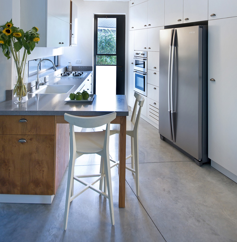 Large openings were designed towards the north and south, ideal in Israeli weather. We used a large, inclined concrete roof to shade the openings, as well as the large trees.