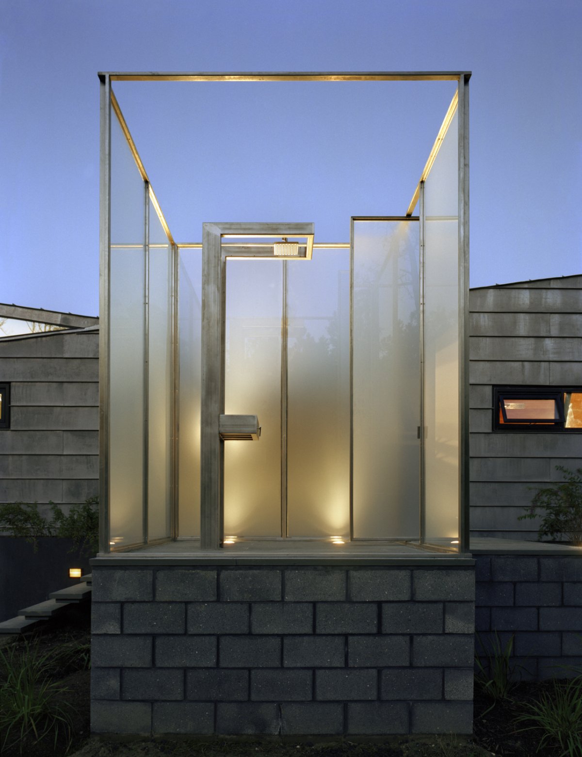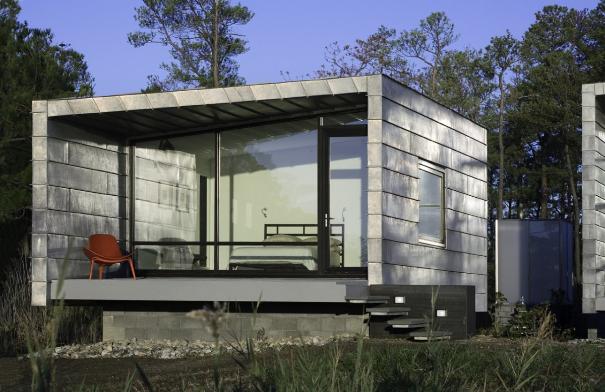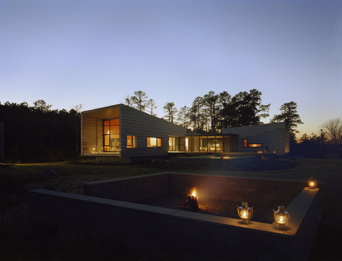After hurricane Isabel ravaged Maryland’s eastern shore, Dorchester Country Department of Planning and Zoning established an ordinance proclaiming that all new residences must be built three feet above the base flood elevation. Inspired by the local vernacular barns and fishing shacks which had survived the hurricane, the house on Hoopers Island was elevated to the height required by code using plinths made of concrete masonry.