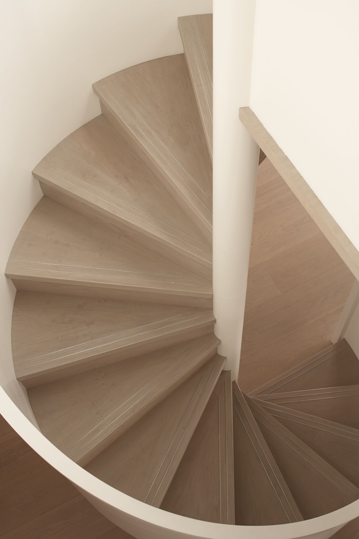 A new sculptural spiral stair was designed to access the roof terrace, through a glass sided sunroom on the 19th floor. The roof terrace offers uninterrupted 360 degree views across the capital.The main living space is divided into three specific areas. Firstly a workspace set in front of floor to ceiling glazing offering views to the Shard and Tower Bridge. Next to the workspace is a comfortable seating area with two armchairs, designed for reading and relaxing by a bespoke designed walnut LP unit.