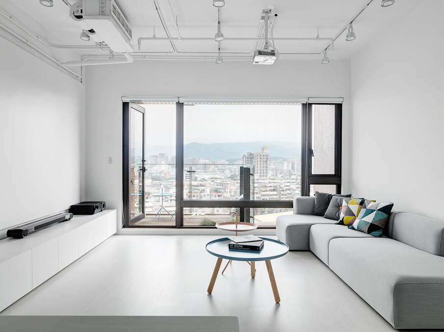 Taiwan studio Tai & Architectural Design kept this apartment in Taipei “as minimal as possible” so it can be easily reverted to its original state.The apartment is being rented by a couple working in the city centre, who asked Tai & Architectural Design to create an interior that can be reverted once their lease is up.”This property can be only rented for five years from the government and the user needs to return it in the same condition,” said the architects.