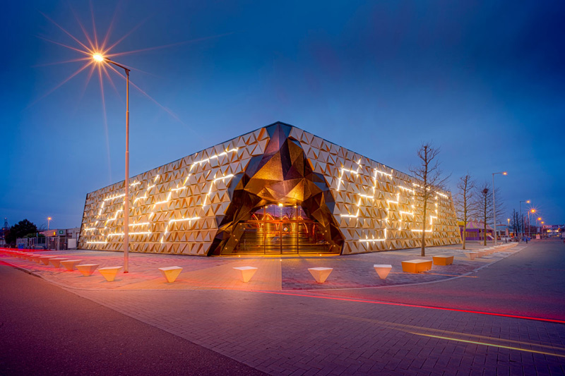 DESIGN – The exterior is defined by a 35 meter long facade that explains the visitors in a glance what they can find here: all that glitters is gold! The entrance is clearly marked. Here, the ‘nugget of gold’ has opened up to provide access to the ‘cave’ where the real golden treasures are safely displayed.
