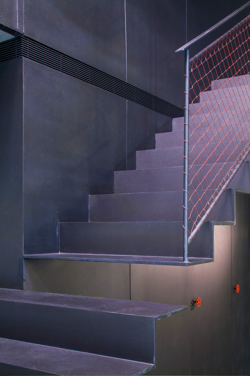 Thus we created both visual and physical contact between the two floors with a new, 6 meter, steel pillar enhancing the powerful vertical line.