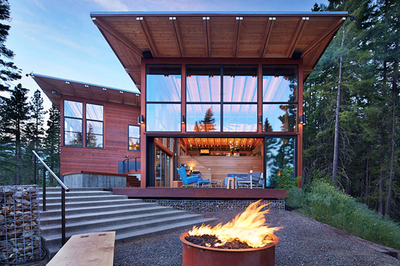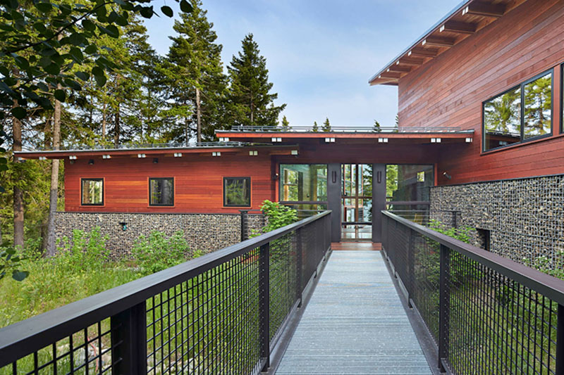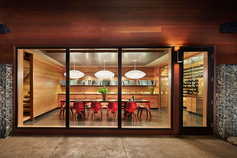 It sleeps over 20 people, but more importantly acts as a recreational base for enjoyment of the surrounding rugged Cascades. Outdoor living is a theme, accomplished partially through sliding walls, pools, hot tubs, water courses and Saunas, but also by architecture that is open and expansive.