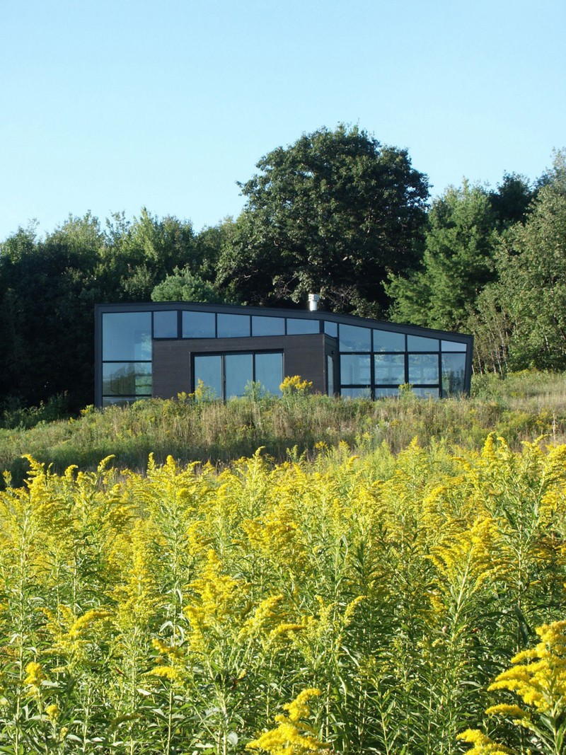 Architect David Jay Weiner designed this home, as a response to a client’s desire to build a small weekend house in Rensselaer County, New York, with southern views overlooking the Berkshire Hills.