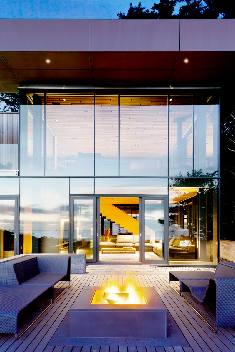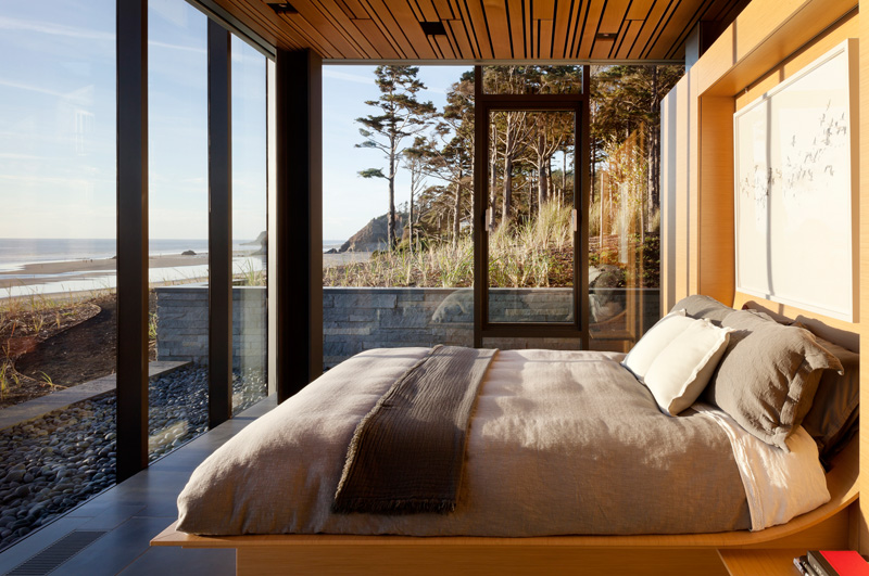Regardless of the unpredictable Oregon Coast weather, the house is filled with natural light. At night, the light levels are kept low to create a cocoon-like, intimate effect.