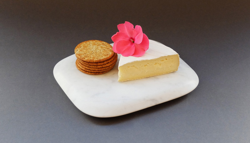 The chopping board’s flat surface has a gentle camber as it reaches the thin, outer edge. This camber, combined with the hollow on the opposite size, affords this design particularly tactile and eye-catching qualities.
