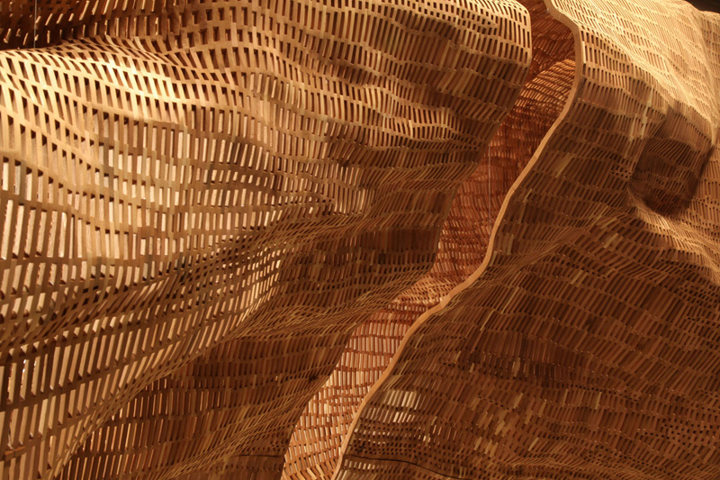 Salvaged old-growth cedar was milled into blocks then layered, cut and bonded with the additional help of hundreds of volunteers. Each small block was oriented and shaped by an individual, responding to the cast topography of the tree’s surface.
