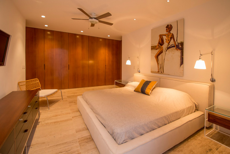 In the private areas of the house, the character of closed spaces was reinforced, using vanes of a smaller dimension and new wooden shutters to control the views from the exterior. Unlike the panoramic views of the social area, the views from the bedrooms were directed to specific points of the bay.