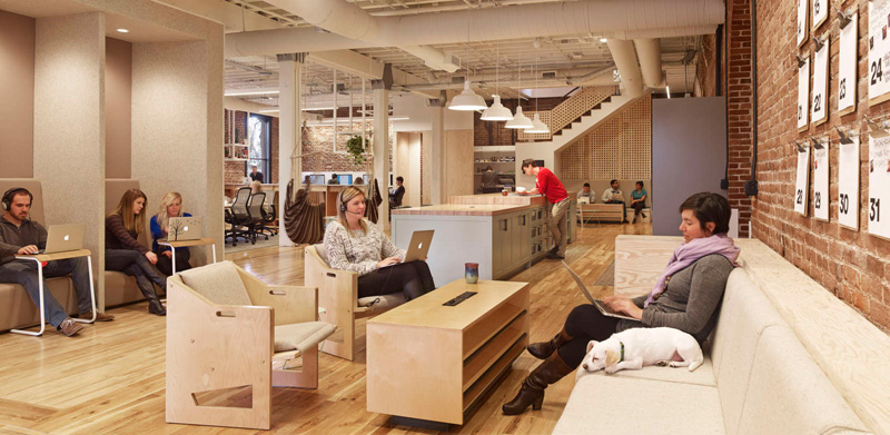 Seventy percent of the furniture is locally fabricated, custom built for the CX workflow. The office could traditionally be considered a call center but there isn’t a phone or cubicle in sight. This is the sharing economy fully expressed in a work environment for the first time.