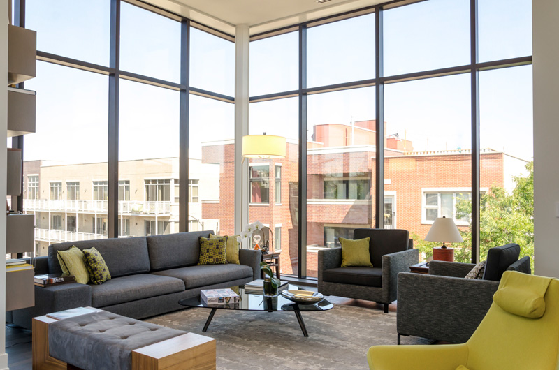 When their children were college bound, the clients were ready to down-size from a multi-story home in the city to a new top-floor condo and wanted a lively, contemporary vibe in their new space.