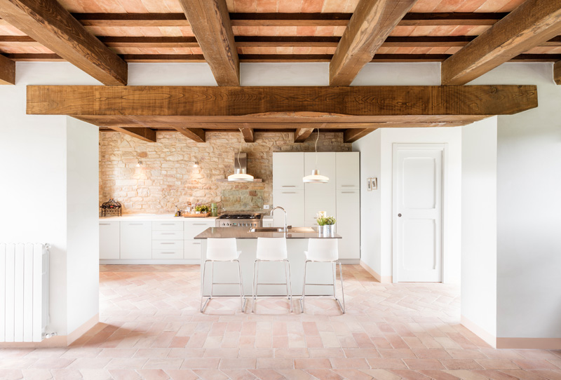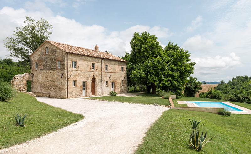 Roy David Studio have completed the transformation of an old stone stable, in Marche di Fermo, Italy, into a holiday home with a contemporary white interior.