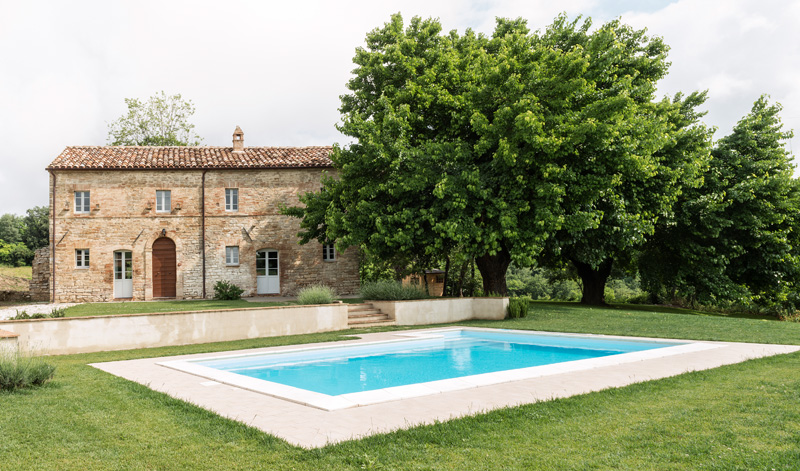 The villa is located in amazing wheat and sunflower fields. The romantic landscape surrounding the villa is celebrated in the flat Tuscan style pool situated in front of the villa’s main facade.