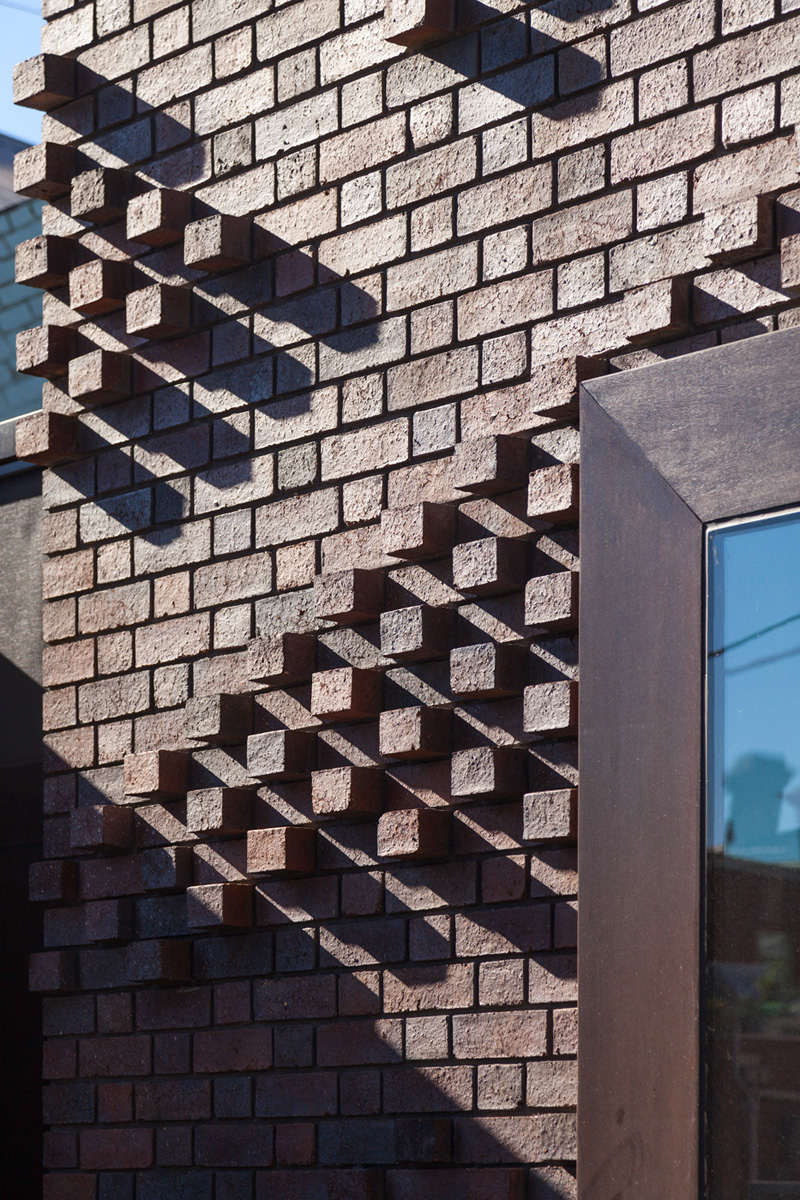 The facade wears its influences up front. Brickwork is patterned in a pixellated representation of a spray can’s sweep.