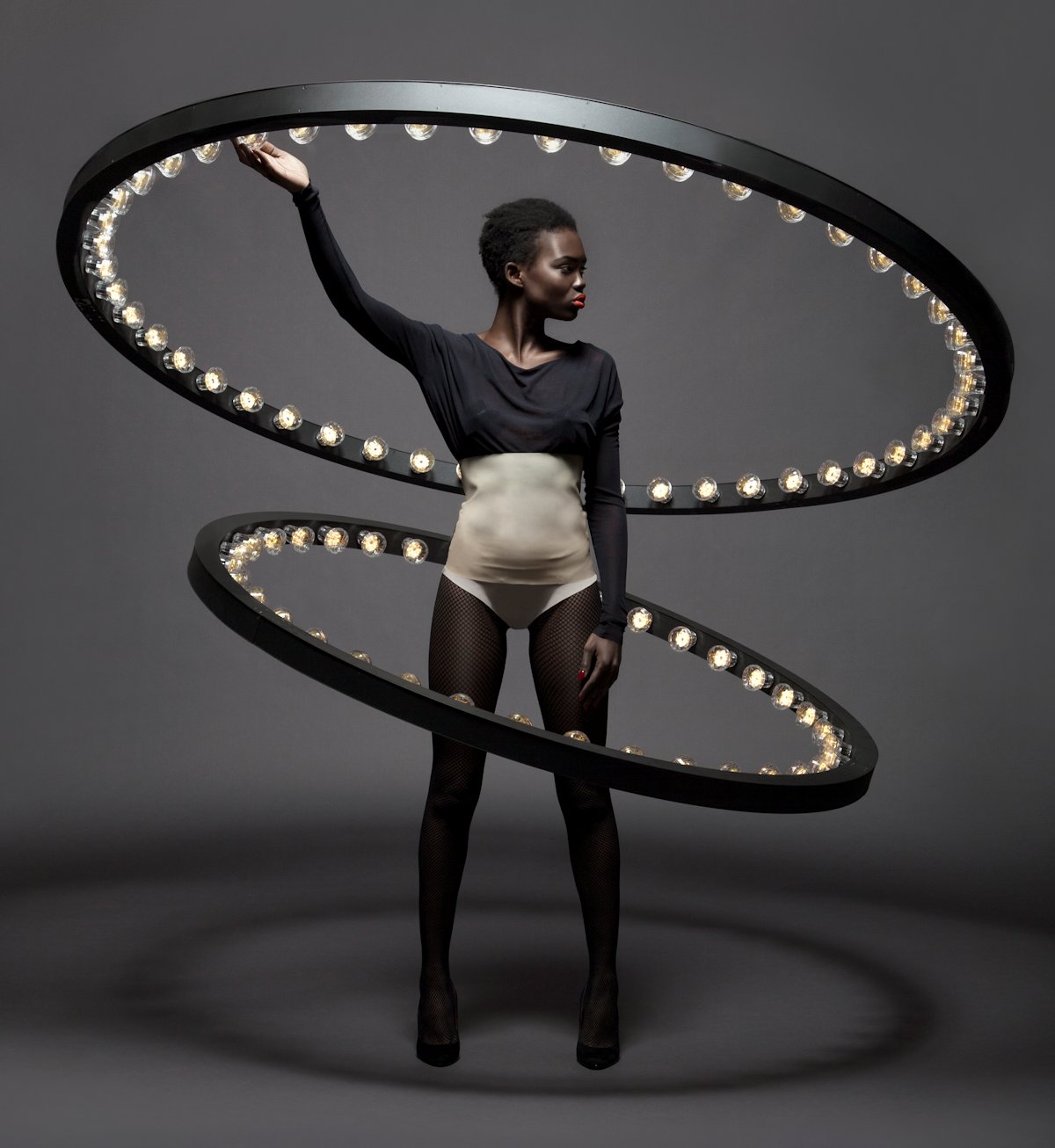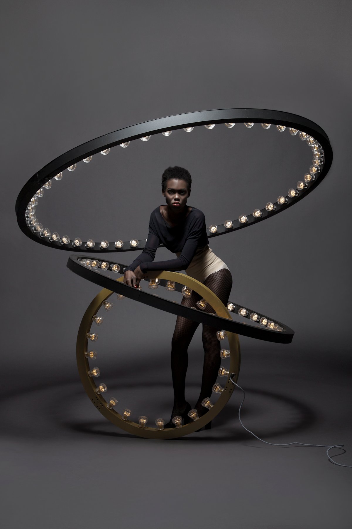 Crafted of Anodized aluminium and fixed with fairground light bulbs these design objects are sophisticated yet playful. It is possible to connect thru the Aura’s; create an immense lighting object by making a range of the same or different sizes offered.