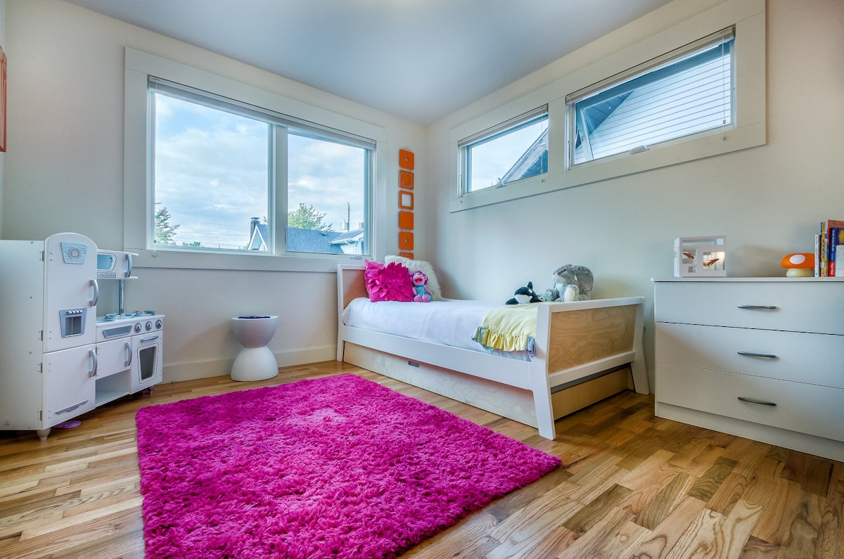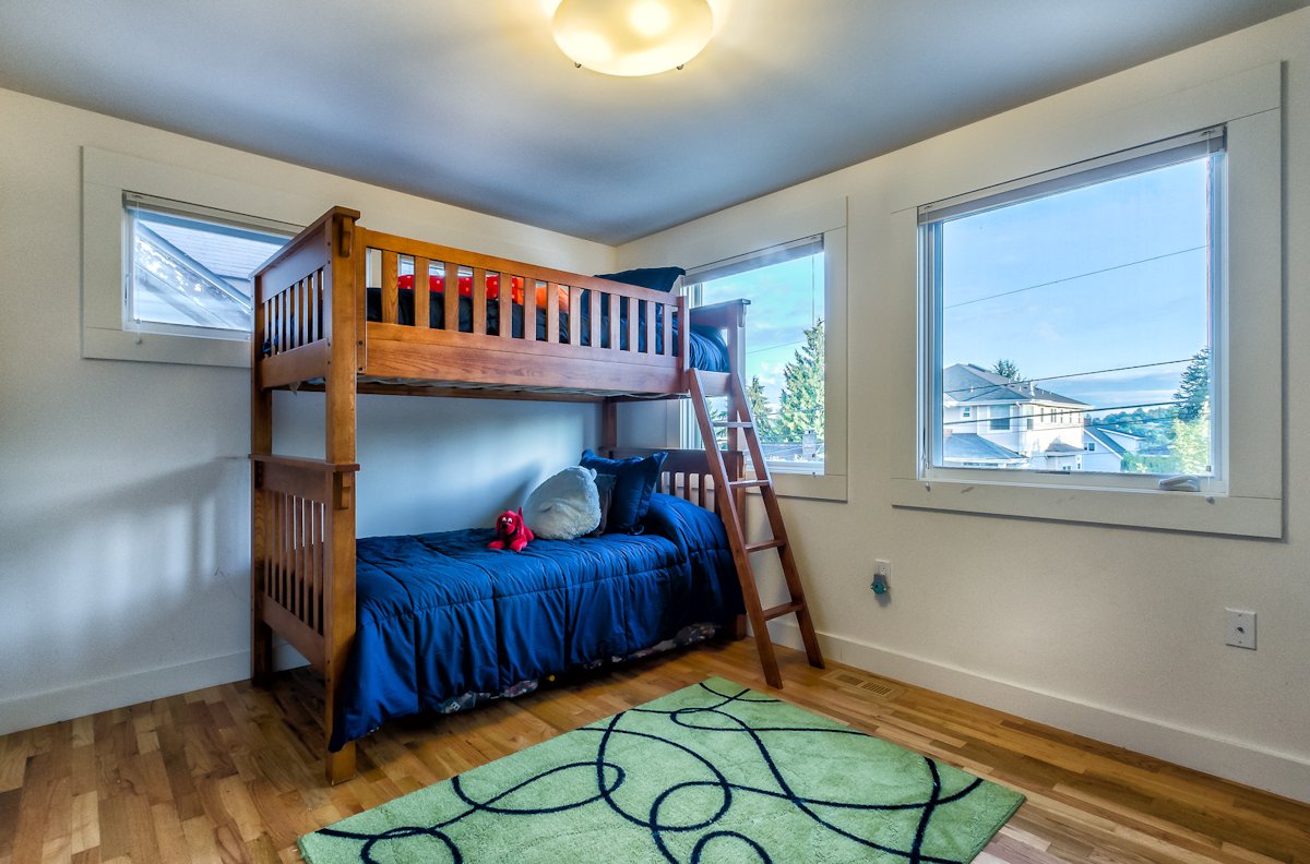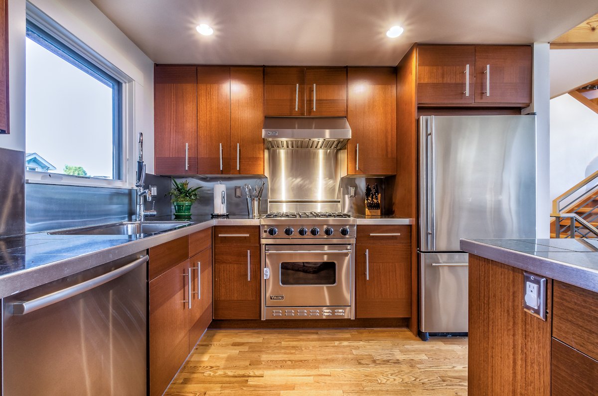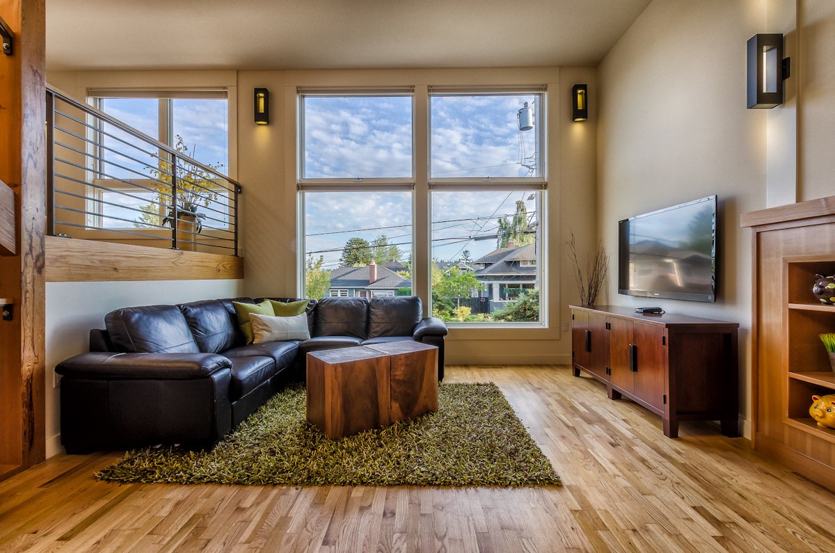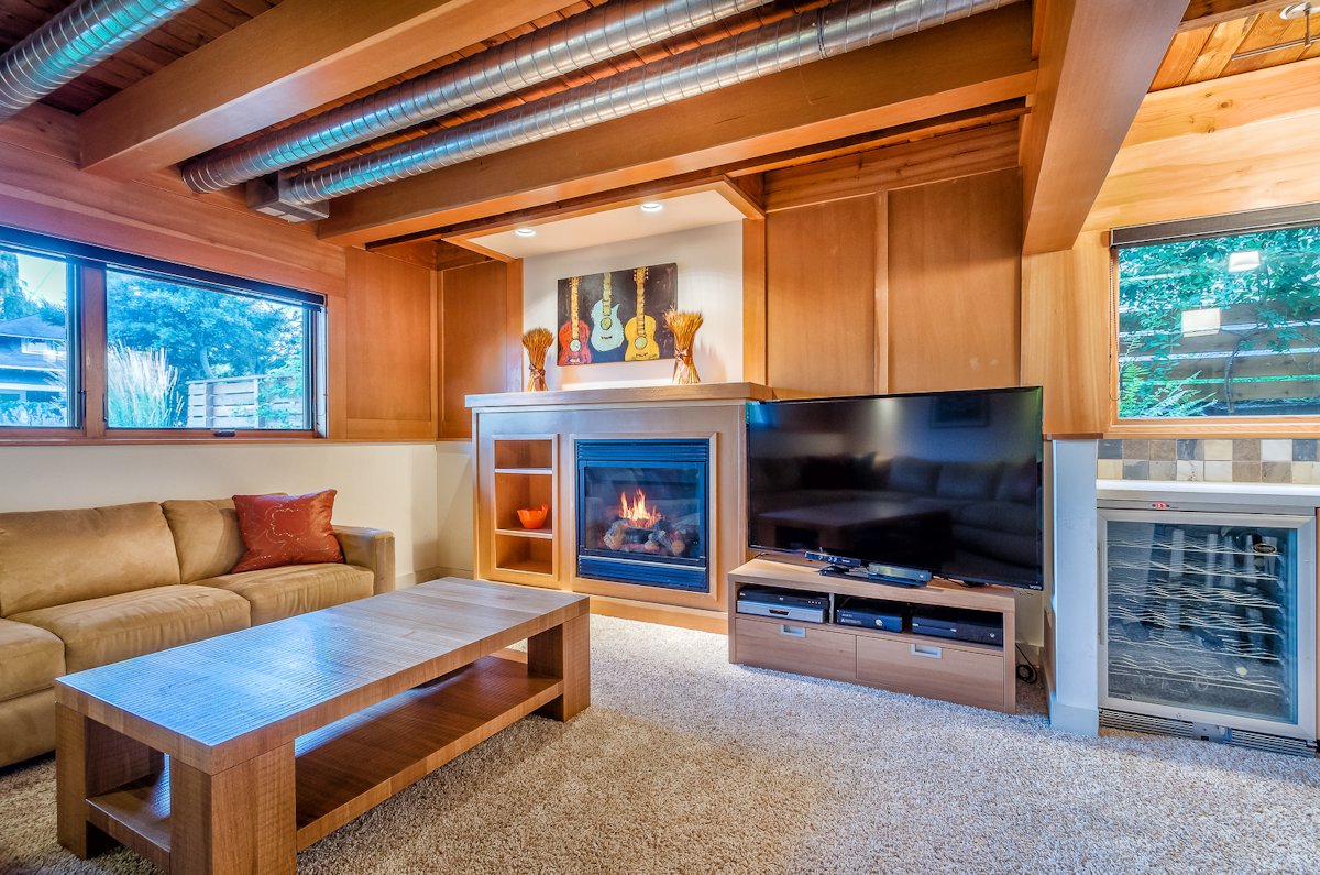 This home remodel is located just north of the Ballard Locks in Seattle, Washington. The original split-level home configuration was maintained to limit scope of work while rebuilding the central exposed stairway to the new upper floor with access to a roof top deck with views of downtown Seattle and Mount Rainier.