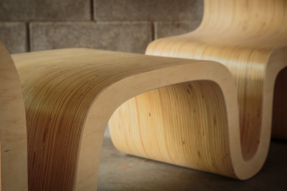Bear table uses the plywood endgrain to accentuate the form. In addition, when glued, the wide surface area creates a solid block of wood. This process makes efficient use of plywood and a sculptural end product.