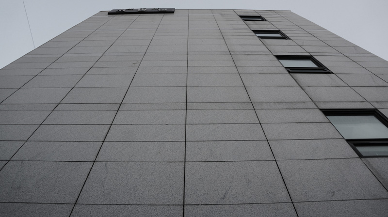As the west facade wraps to the long north facade, the distortion creates ribbon windows of different heights, with less glazing at the top to minimise glare effects on the interior, and more glazing towards the bottom to provide daylighting where it is most needed. Algorithmic design was used to create secondary subdivision grids within the granite pattern, easing material sourcing and installation, and greatly saving costs.