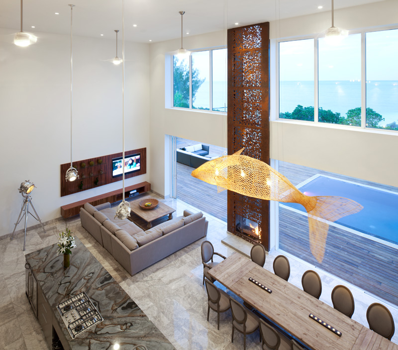 The Bella Vita Villa celebrates its natural, oceanfront site. The villa explores lightness, filtering natural breezes, layers of transparency and integrating indoor / outdoor spaces within dynamic patterns of light and shadow, providing a simple frame within which a contemporary sustainable lifestyle can unfold.