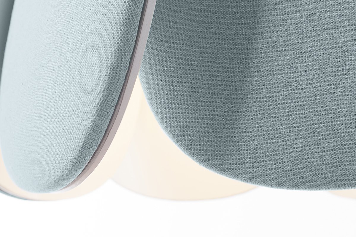 The final product is a combination of just three elements: lacquered wood, recycled fabric and polyurethane foam.