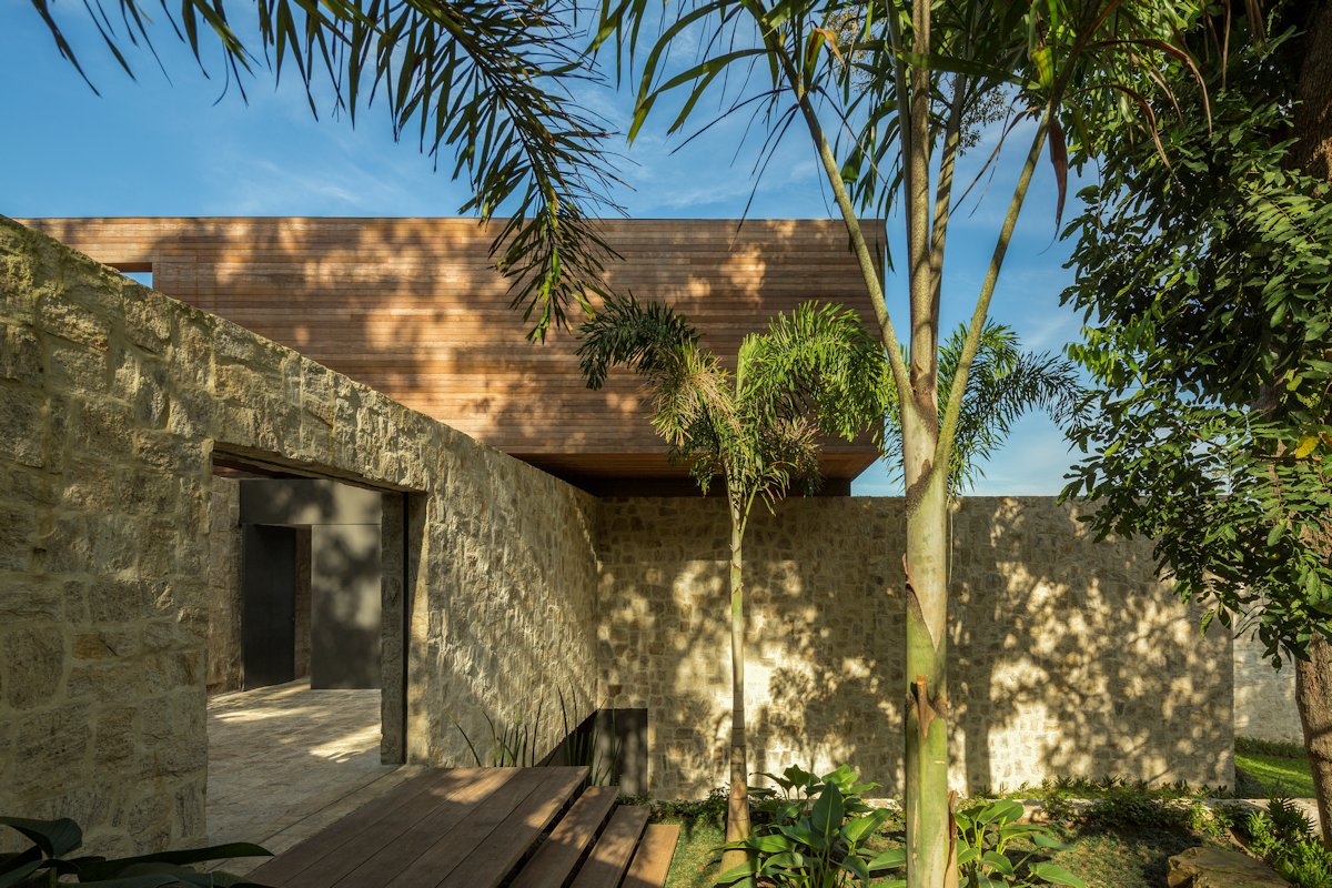 The materials employed are inspired by the landscape, with local stone and cumaru wood. The interior design project favors comfort and casualness, with Brazilian furniture blended with foreign items.