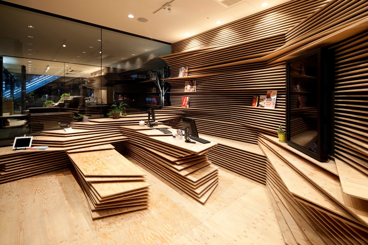 Kengo Kuma and Associates have designed the Shun*Shoku Lounge, an information booth and public-relaltions space in Tokyo for Japanese restaurant guide Gurunavi.