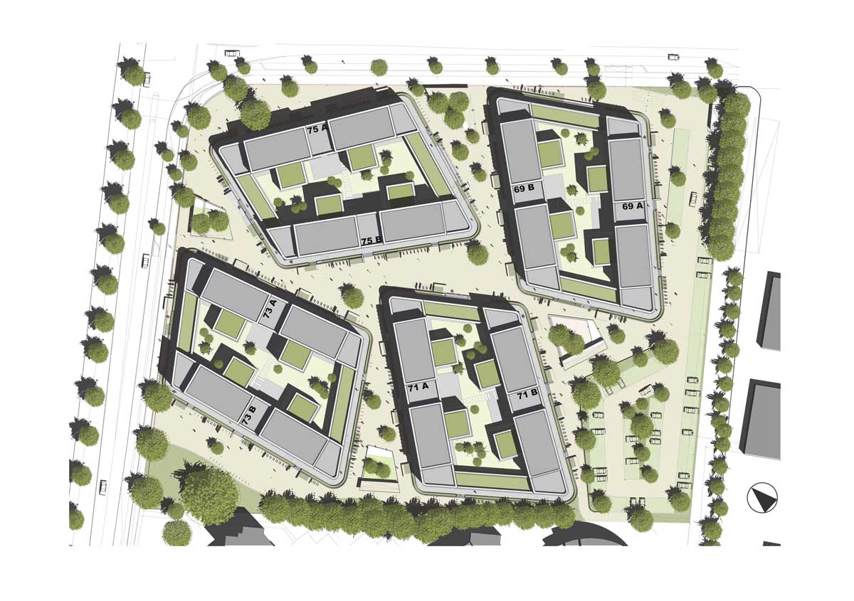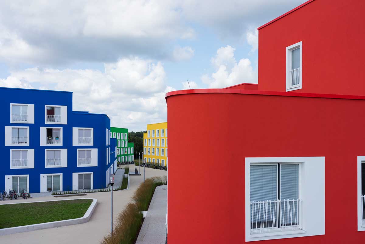Kresings GmbH have designed Boeselburg, a group of colourful council and student housing buildings in Münster, Germany.