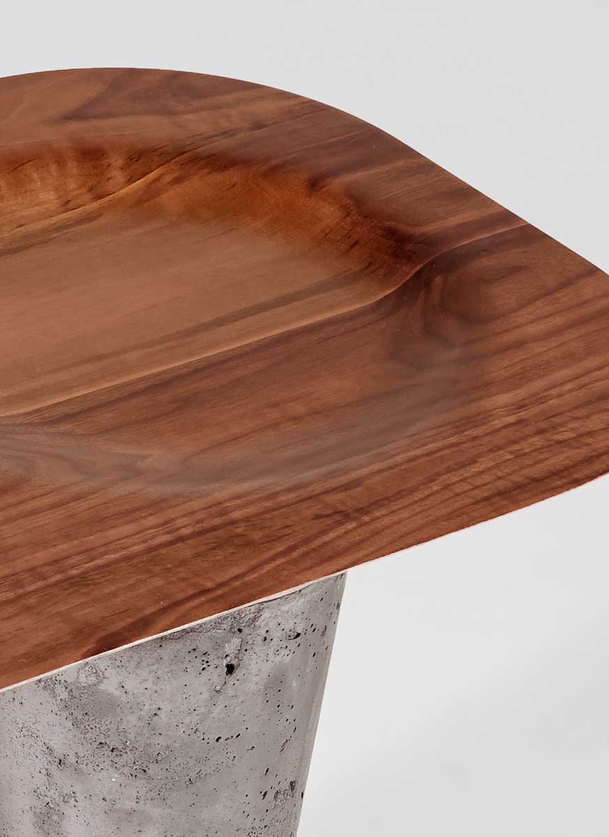 CS 1 was lead by the 24 years old Swiss Industrial Designer Mathias Hintermann. The award winning Designer, currently living in California, explains: “Through careful consideration of the overall appearance, the concrete and copper legs transition effortless in to the walnut tabletop. Cold concrete contrasts the dark walnut, which fluently merges in to the warm appearance of the copper leg. The edges of both tables have thin edges that give a lightweight appearance to a sturdy construction. Additionally, the concave on top of the surface separates one into two functional surfaces.“ Astfrei designs all furniture outside its manufacturing facility in Switzerland. This interplay of foreign inspiration with Swiss manufacture creates a unique contemporary business model.