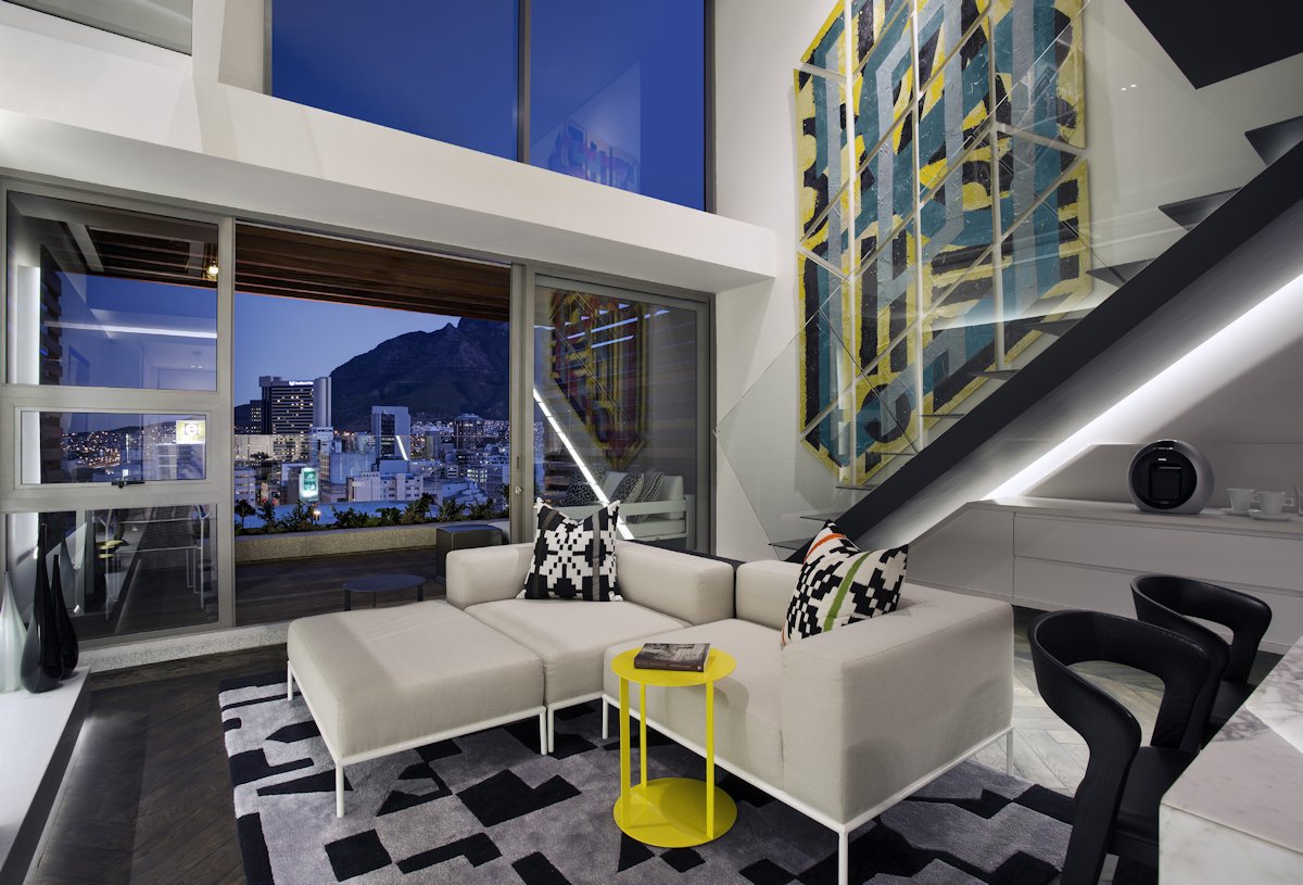 The firms wanted to represent modern, urban Africa and Rielly noted that there is a strong emphasis on rhythm, geometric forms and graphic elements. They wanted artwork and interiors that explored the avant gardist graphic of the interior architecture and introduced colour. Adam Court, partner at OKHA, played with a fusion of modern African graphic and colour to juxtapose the lean, monochromatic interior. “We wanted very limited accessories and one major artwork, not wanting to overload the space or the senses,” Court noted. Urban living comes with few but definite obstacles such as space, challenging any aesthetic idealism as function needs to meet form. Here, innovation meets true purpose as Court designed multi-use and bespoke furniture which can hide all the clutter accumulated in any home.