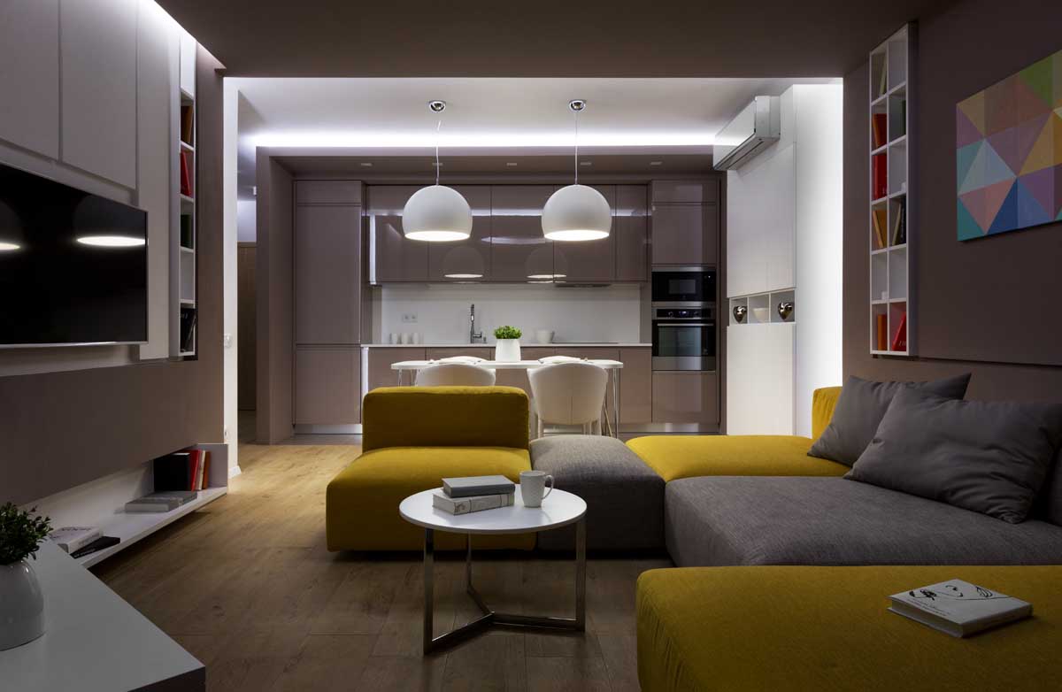 Denis Rakaev has designed the Moon Box apartment, located in Kiev, Ukraine.