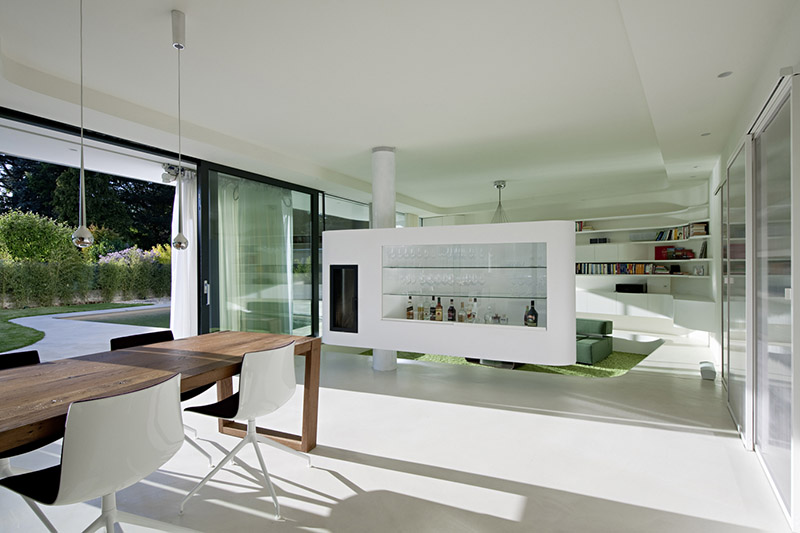 This cabinet, in a home by Caramel Architects, is like the Swiss Army Knife of cabinets. It’s a space divider, an entertainment unit, a liquor cabinet, and has a fireplace on the end. As if all that wasn’t enough, the whole thing is just hanging in space, because it’s cantilevered, which is a fancy way of saying that it’s only supported on one end.