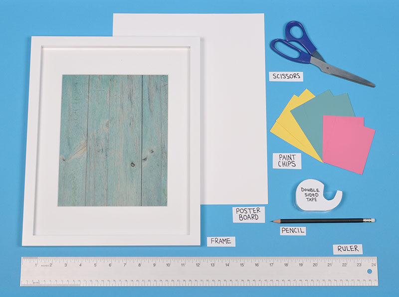 Poster board pre-cut to the shape of your frame and a piece of scrap paper.
