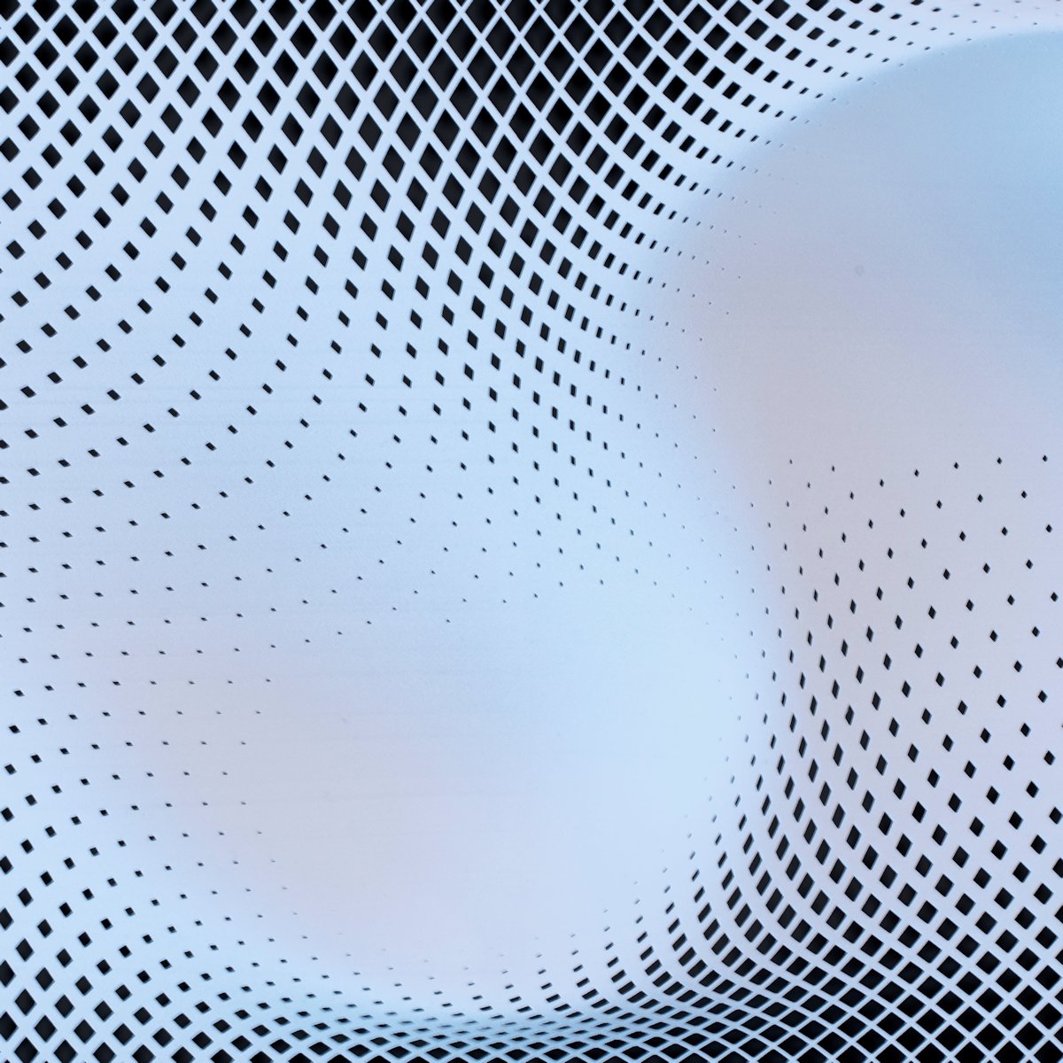 Dunes has been produced using the 3D printing technique with laser sintered nylon powder. In order to minimize the use of material, the object has been perforated so that it is solid only where necessary.