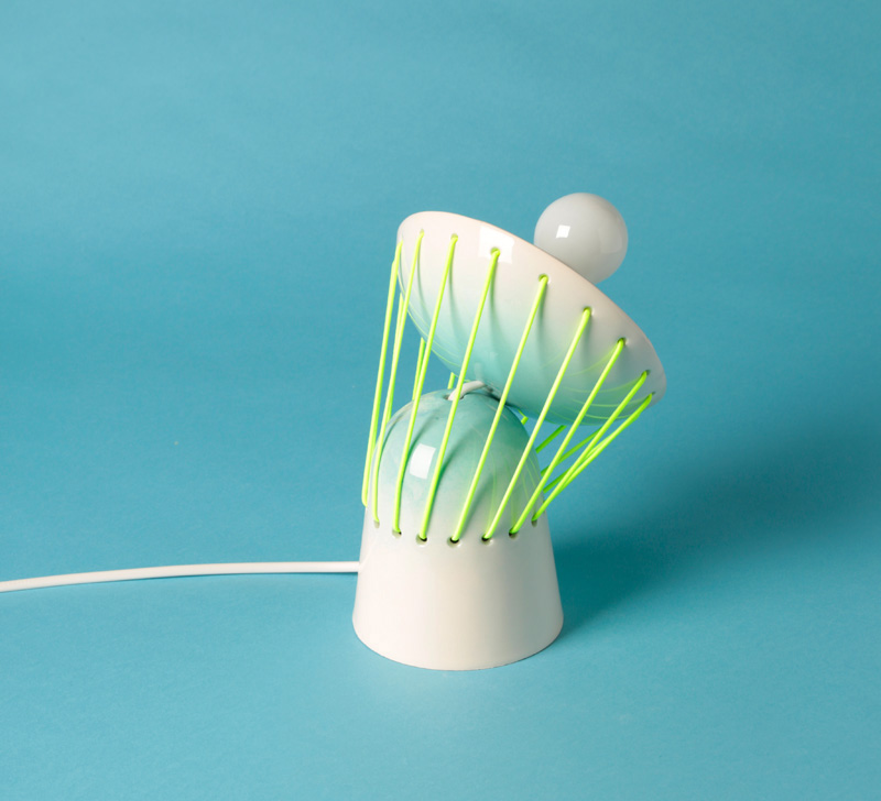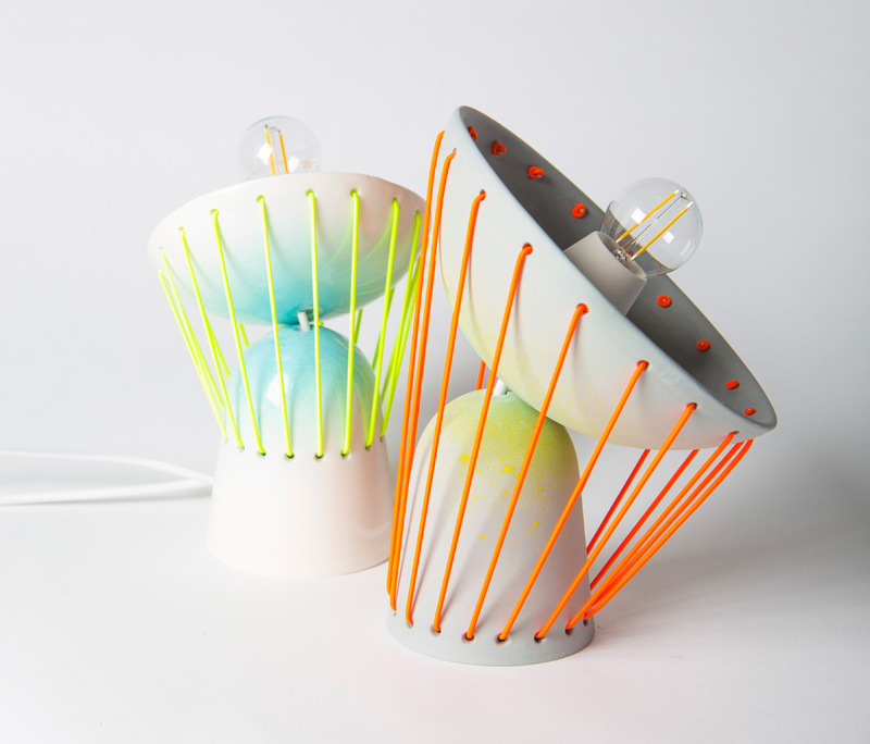 Marta Bordes has designed Elastic Lights, a collection of ceramic lamps that have a moveable part held together by elastic so that you can easily change the direction of the light.