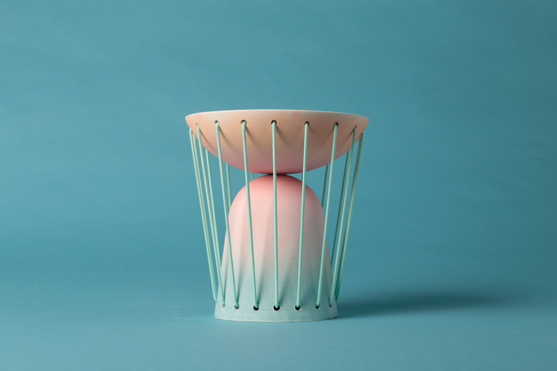 With a background in architecture I approached ceramics as an outsider, looking at it from an unbiased perspective questioning its applications and its limits, understanding its physical qualities. The material was the starting point. My intention was to challenge a material that is very traditional and familiar in an unconventional application that defied common assumptions about ceramics, celebrating the material and enhancing the interaction with the user.